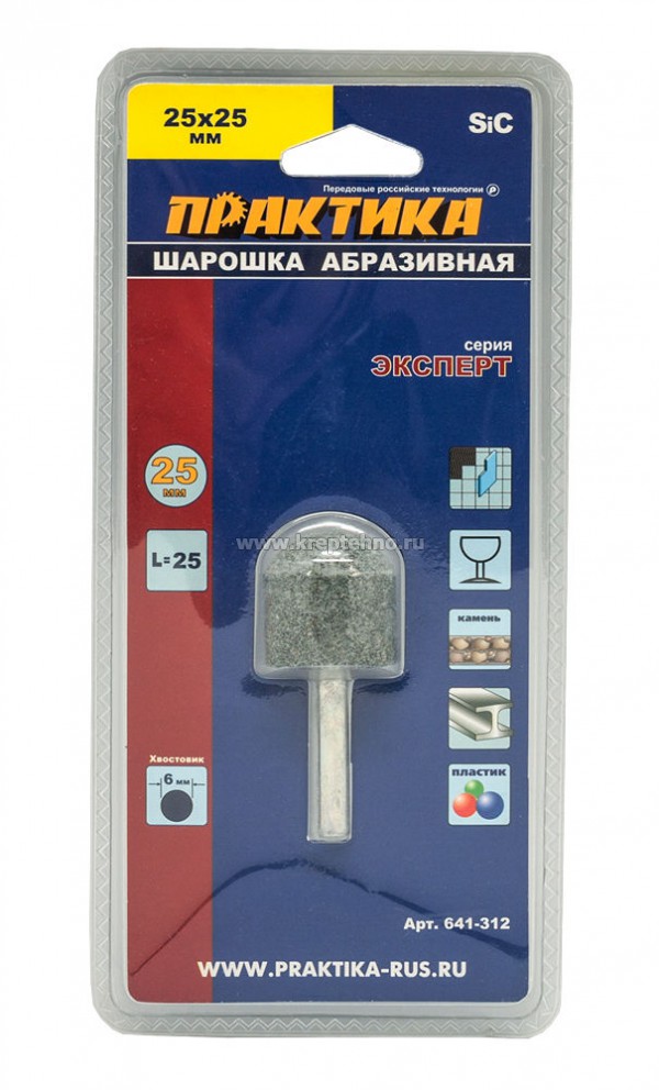 641-312 Шарошка шлифовальная 25х25мм, хв 6мм, закругленная, карбид кремния, ПРАКТИКА шт 0.04 В наличии 134 134 В корзину