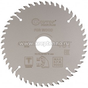Диск пильный 160х1,3/2,0х30/25,4/20/16 мм 48Т по дереву, с тефлоновым покрытием, CUTOP Profi