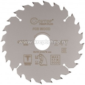 Диск пильный 160х1,3/2,0х30/25,4/20/16 мм 24Т по дереву, с тефлоновым покрытием, CUTOP Profi Диск пильный по дереву Cutop Profi Plus с тефлоновым покрытием.
