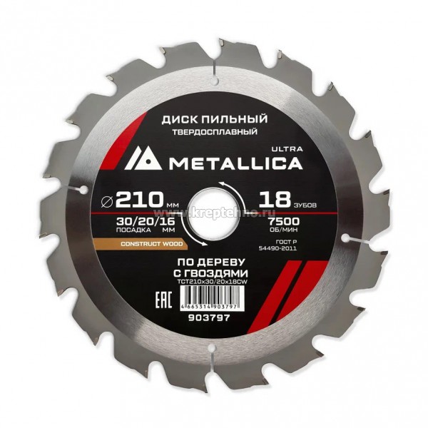 Купить Диск пильный с гвоздями по дереву METALLICA Ultra в Екатеринбурге и Свердловской области можно в сети магазинов КРЕПЕЖ-СИТИ.