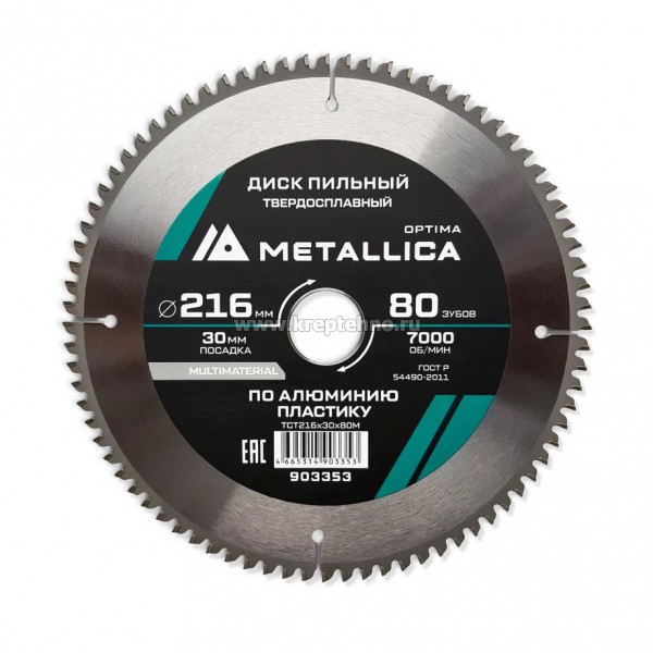 Купить Диск пильный по алюминию, пластику METALLICA Optima в Екатеринбурге и Свердловской области можно в сети магазинов КРЕПЕЖ-СИТИ.