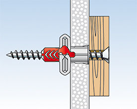 • Вворачивание шурупа обеспечивает распор дюбеля DUOPOWER в полнотелом строительном материале, связывание в полостях пустотелых материалов и распор лопастей дюбеля в листовых материалах.
