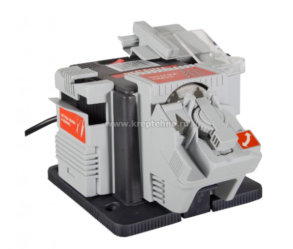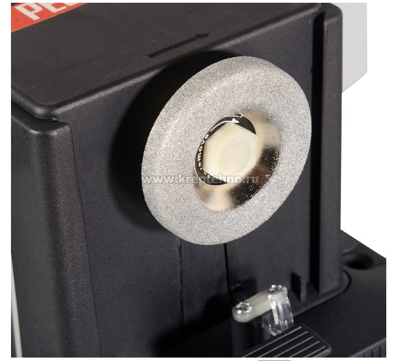 Прибор является универсальным, может затачивать разные типы лезвий благодаря точильному кругу диаметром 49,3 мм, который приводит в движение электромотор мощностью 65 Вт.