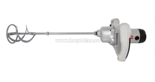 • В основе конструкции миксера лежит мощный электромотор с энергопотреблением 1600 Вт, благодаря чему устройство легко справляется с обработкой тяжелых строительных смесей.
