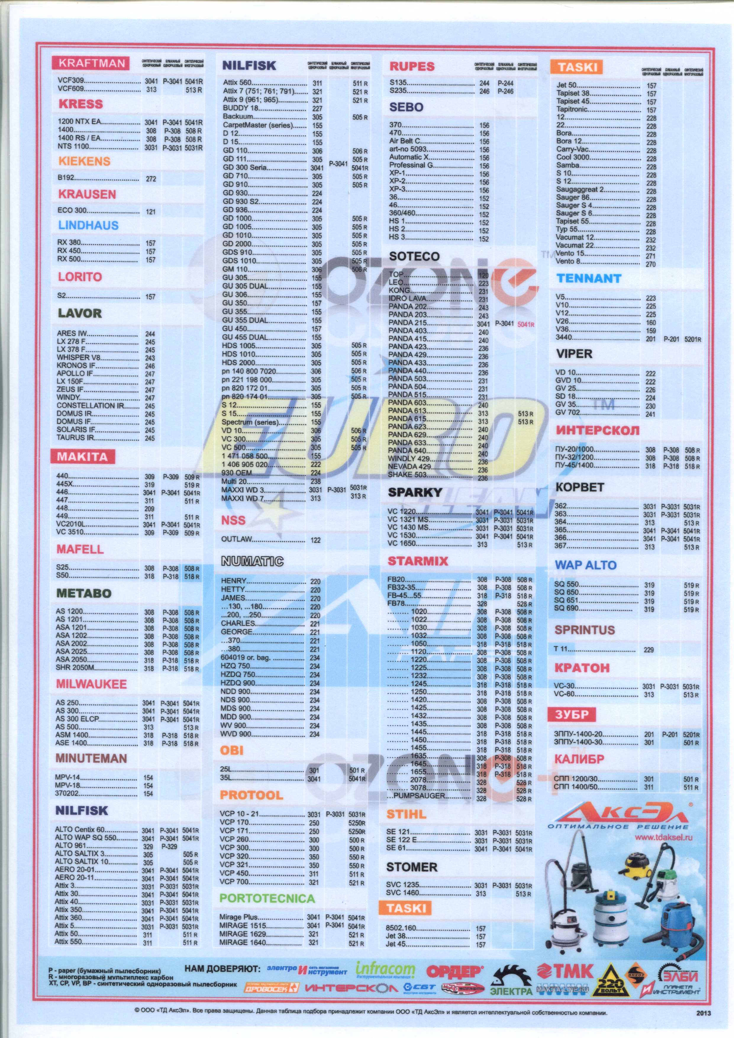 Таблица подбора пылесборниковЭта таблица поможет вам в выборе необходимой модели мешков для сбора пыли, а приобрести пылесборники вы можете в наших магазинах!