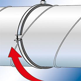 Начиная с диаметра 450мм, возможна установка с двумя резьбовыми шпильками по бокам Цинкование проводится по способу Сендзимира, примерно 20 мкм Сварной шов контактной сварки M 8/M 10, SW 13 Винт с овальной комбинированной головкой с пазом Звукоизолирующая вставка из SBR/EPDM; без хлора; без силикона. Звуковая изоляция DIN 4109 Тведость: 45 ± 5° по Шору A Пожаростойкость: DIN 4102, класс B2 Преимущества:
