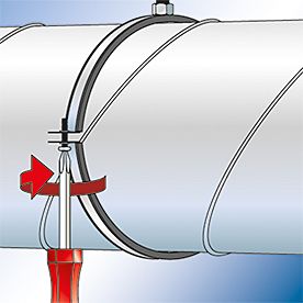 Хомут для воздуховодов D300 LGS300, М8/М10 Fischer Двухэлементный трубный хомут со звукоизолирующей прокладкой.