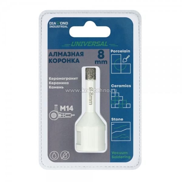 Коронка алмазная по керамике и керамограниту 8 мм/M14 для УШМ, Diamond Industrial