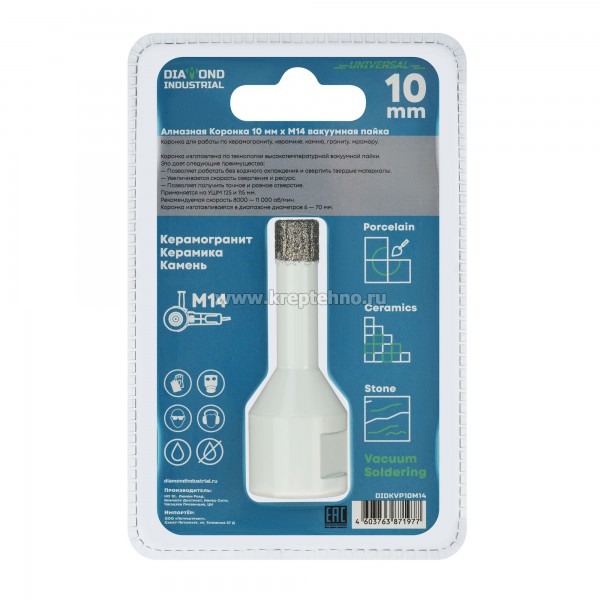Коронка алмазная по керамике и керамограниту 10 мм/M14 для УШМ, Diamond Industrial