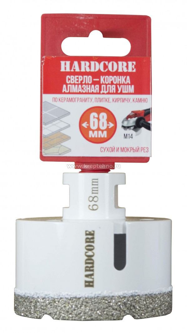 Коронка алмазная по керамике и керамограниту 68 мм/M14 для УШМ, Hardcore