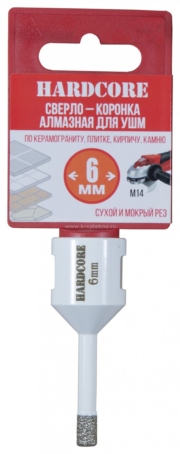 Коронка алмазная по керамике и керамограниту 6 мм/M14 для УШМ, Hardcore