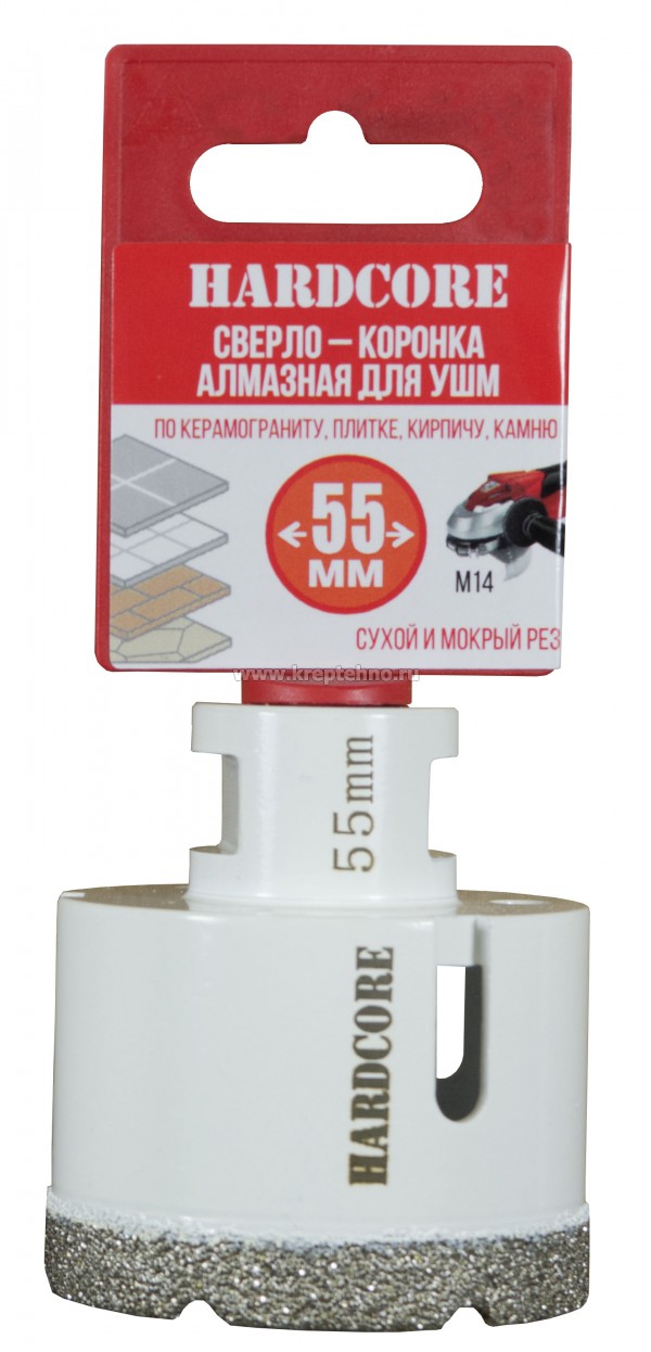 Коронка алмазная по керамике и керамограниту 55 мм/M14 для УШМ, Hardcore