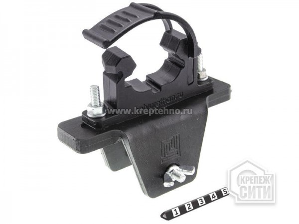 Состоит из металлического кронштейна и непосредственно полиуретанового крепления. Крепление плотно фиксирует предмет благодаря овальной форме выемки в крепежном основании и эластичному ремешку.