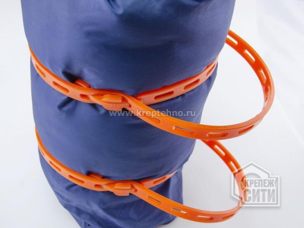 Прочный ремень небольшой ширины с крепежными отверстиями по всей длине и удобными захватами с обоих концов для застежки. Конструкция каждого захвата представляет из себя два последовательно расположенных упорных фиксатора.