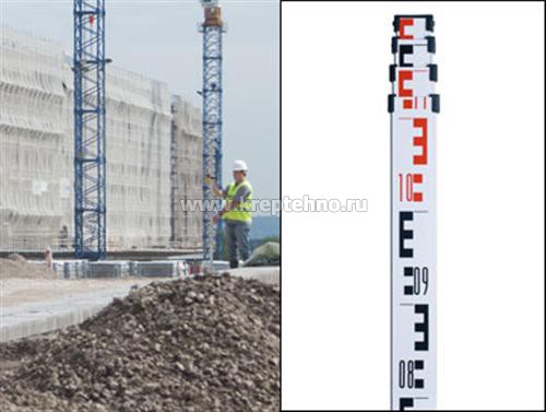 - Выдвижная до 500 см, шкала с хорошей видимостью на большие расстояния с Е-образным делением единиц измерения, деление единиц измерения на оборотной стороне в см.