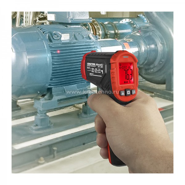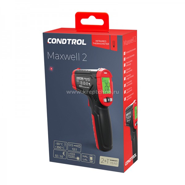 - Пирометр Condtrol Maxwell 2 отличается простотой в использовании, компактными размерами и небольшим весом. Достаточно навести лазерный указатель на объект, нажать на триггер, и результат появится на экране.