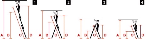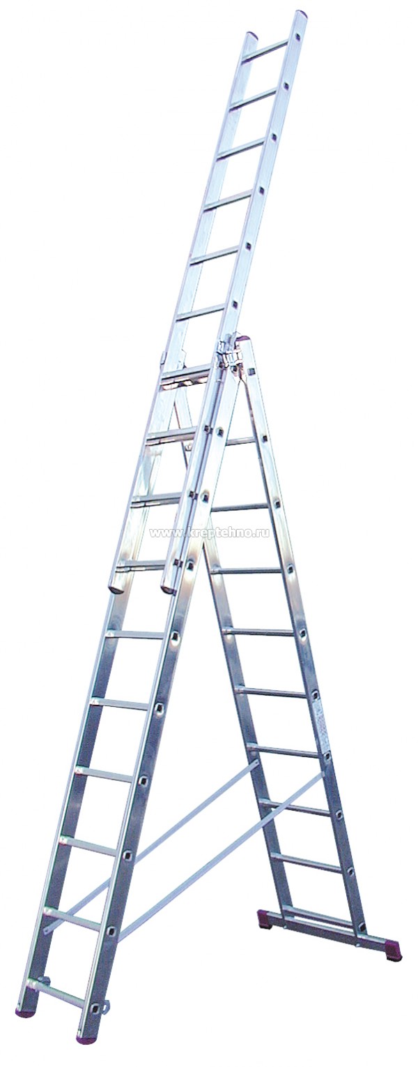 Тип Трёхсекционная Количество ступеней/перекладин 3х14 Длина в положении «раздвижная/приставная лестница» (1C – 4C) 10,15 – 3,80 м Рабочая высота в положении «раздвижная/приставная лестница» (1A – 4A) 10,80 – 4,85 м Высота лестницы в положении «стремянка» (3D) 3,80 м Рабочая высота в положении «стремянка» (3A) 5,10 м Высота лестницы в положении «стремянка с выдвинутой секцией» (2D) 6,50 м Рабочая высота в положении «стремянка с выдвинутой секцией» (2A) 7,50 м Максимальная рабочая нагрузка 150 кг Вес 30,0 кг Транспортные габариты 0,17х0,48х4,00 Дополнительные преимущества: