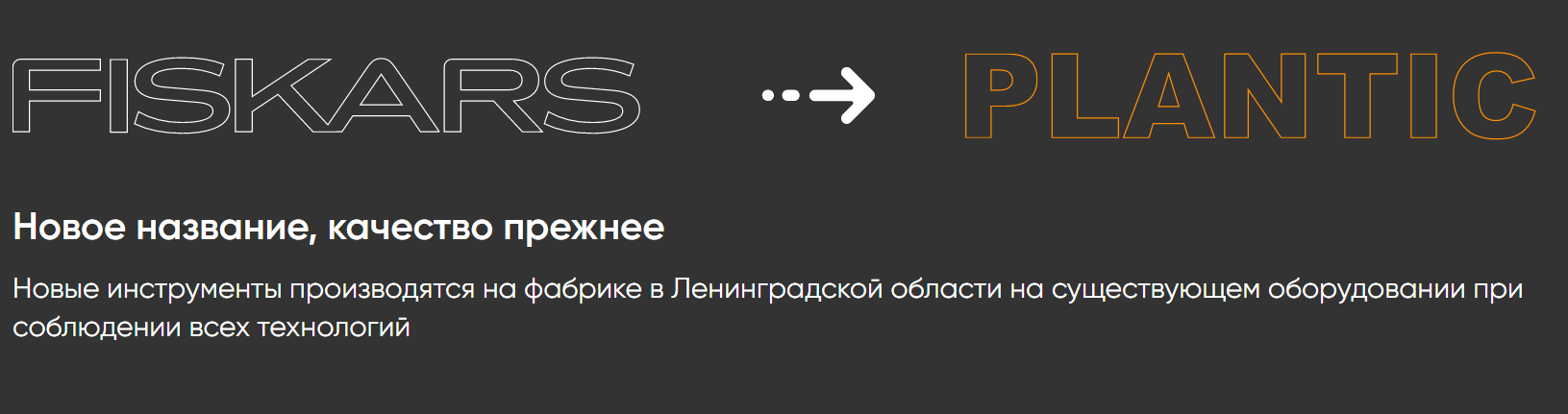 Садовые инструменты, которые носили имя Fiskars, отныне выпускаются под локальным брендом Plantic. При этом дизайн, технологии и материалы остаются теми же - ведь продукция новой торговой марки производится на российских мощностях, ранее принадлежавших финской компании “Фискарс Финланд ОЮ АБ”. Многие инструменты бренда Fiskars производятся на фабрике в Ленинградской области, построенной в 1997 году. Из-за реорганизации дочернего российского предприятия произошел запуск нового локального бренда – Plantic, который постепенно пришел на смену произведённым в России лопатам и инструментам Fiskars. Под брендом Plantic выпускаются штыковые, совковые, снежные лопаты и другой инвентарь для ухода за садом