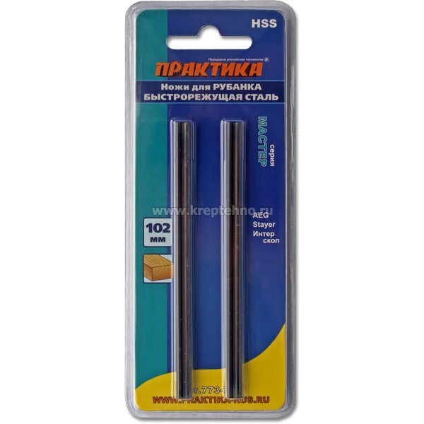 Нож для рубанка ПРАКТИКА 102мм х 5,5мм, быстрорежущая сталь (2шт)