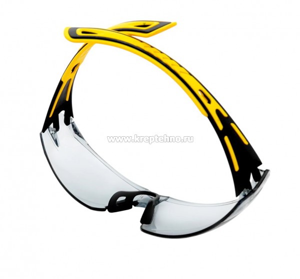 Защитные очки последнего поколения с двухцветными мягкими дужками, сделанными с применением инновационного материала ТЭП (термоэластопласт), с панорамными линзами, которые обеспечивают улучшенный обзор и защищают глаза от попадания летящих частиц.