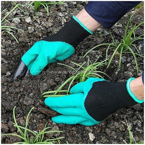 - К правой перчатке прикреплены жесткие пластиковые «когти», с их помощью можно взрыхлить землю для подготовки к посадке, выкопать растение и так далее.