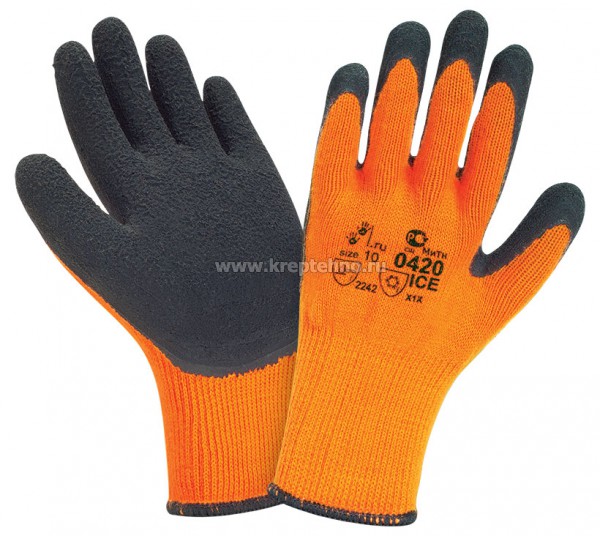 • Перчатки обливные - бесшовная трикотажная основа с ворсом, с внутренней стороны перчатки - акриловый трикотаж плотностью 10 петель ярко-оранжевого цвета, с частичным покрытием ладони и пальцев вспененным латексом.