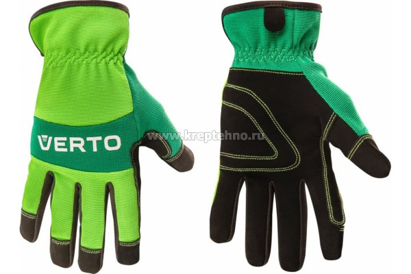 Рабочие перчатки VERTO кожзаменитель, 9" 97H121 незаменимы при садовых и мелких бытовых работах. Надежно защищают руки от различных повреждений и грязи.