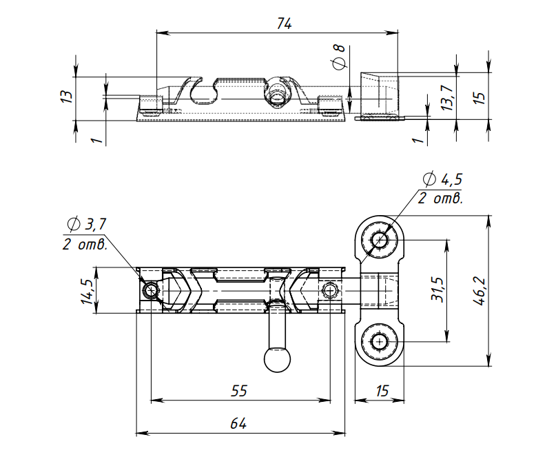 Шпингалет (задвижка накладная) 3Т1, цинк