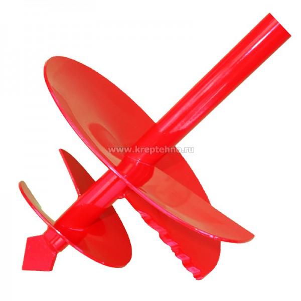 - Кромка каждого шнека армирована твердоcплавной острозаточенной пластиной. Каждый шнек бура изготовлен коническим, что в значительной степени увеличивает его жёсткость и, соответственно, прочность. Такая конструкция также увеличивает объём разовой выемки грунта. Шнеки приварены таким образом, что второй шнек идёт по следу первого. При этом значительно уменьшается усилие вращения бура.