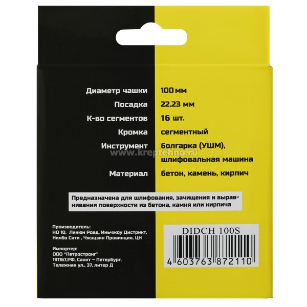 Купить Чашку алмазную шлифовальную двойной сегмент Diamond Industrial в Екатеринбурге и Свердловской области можно в сети магазинов КРЕПЕЖ-СИТИ.
