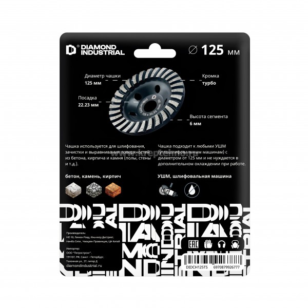 Чашка алмазная зачистная шлифовальная по бетону турбо 125 мм DIDCH125TS Diamond Industrial