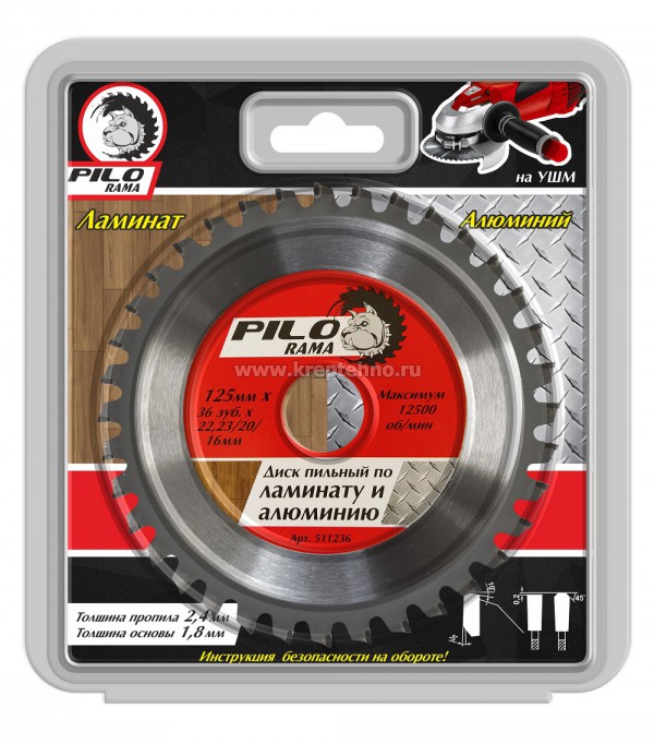 Купить Диск пильный для УШМ по ламинату и алюминию Pilorama в Екатеринбурге и Свердловской области можно в сети магазинов КРЕПЕЖ-СИТИ.