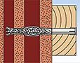• Особый принцип действия позволяет использовать дюбель в полнотелых и пустотелых строительных материалах с глубиной анкеровки 70 - 90 мм, обеспечивая экономичное крепление