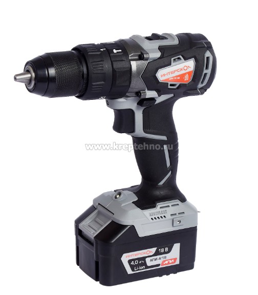 Аккумуляторная дрель-шуруповерт ударная ИНТЕРСКОЛ ДАУ-13/18В 18 В 4,0 А/ч, 1 аккум, ЗУ Дрель-шуруповерт оснащена Li-ion слайдерным аккумуляторным блоком платформы АПИ.