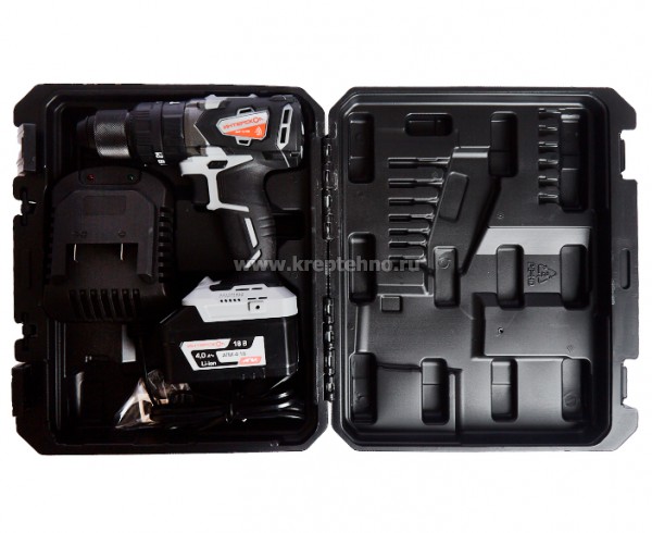 Рекомендуется для профессионального использования. Высокая энергоэффективность, отличная производительность, мощность и надежность благодаря вентильному бесщеточному приводу. Экономичное использование ресурса аккумуляторных батарей за счет высокого КПД привода. Li-ion аккумуляторы АПИ позволяют сэкономить до 70% средств при приобретении каждой следующей машины. Редуктор с механическим переключением скоростей. Управление скоростью вращения нажатием на курок. Моноблочная бестрансформаторная зарядка заряжает батарею за 1 час не сокращая срок ее службы. Металлический патрон с фиксацией. Удобная обрезиненная рукоятка. Удобно расположенная мощная подсветка рабочей зоны, автоматически подключающаяся при недостаточном уровне освещенности. Скоба для подвешивания на ремень. Надежный удобный кейс. Технические характеристики: