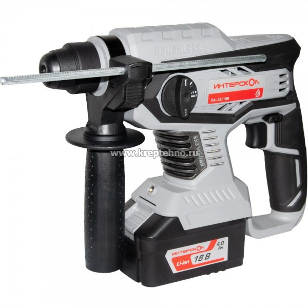 Перфоратор оснащен Li-ion слайдерными аккумуляторным блоком платформы АПИ ИНТЕРСКОЛ.