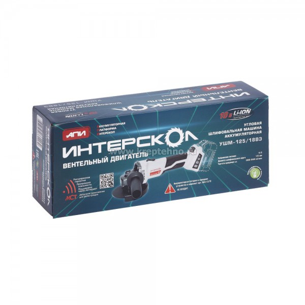 УШМ аккум.-125/18ВЭ ИНТЕРСКОЛ 125мм, 3000-8500 об/мин. (без аккум и ЗУ)
