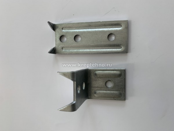 Крепеж выполнен из оцинкованной стали, представляет собой два изделия оригинальной формы.