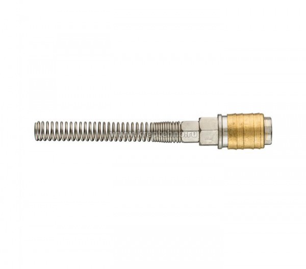 Благодаря пружине напорный шланг мягко отклоняется и не складывается сразу за фитингом.
