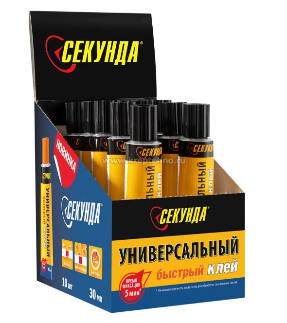 Купить Клей универсальный БЫСТРЫЙ кристально-прозрачный "Секунда" в Екатеринбурге и Свердловской области можно в сети магазинов КРЕПЕЖ-СИТИ.