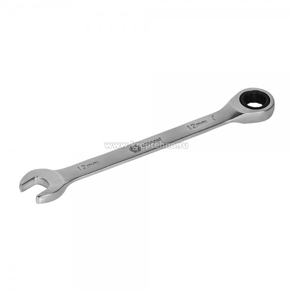 Ключ комбинированный трещоточный 12 мм КОБАЛЬТ 642-524, предназначен для отвинчивания/завинчивания мелкого резьбового крепежа с шестигранными головками при производстве строительных, электротехнических, монтажных и автосервисных работ.