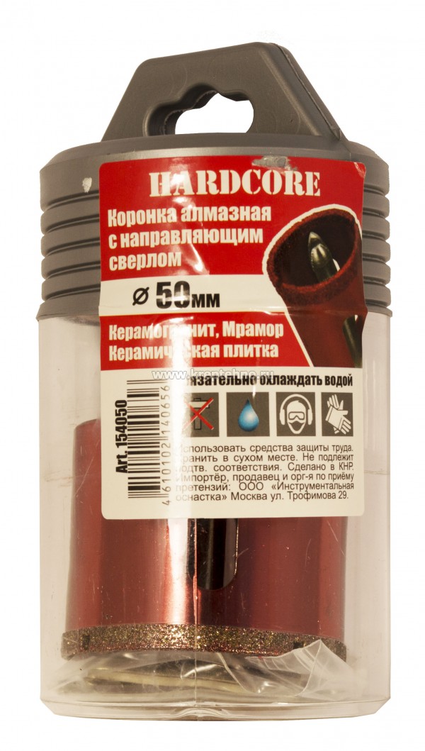Коронка алмазная Hardcore 154... применяется для сверления керамогранита, керамической плитки, мрамора и камня.