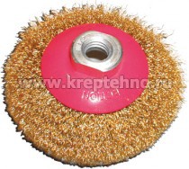 Корщетка-колесо 100мм с наклоном латунь, гайка М14, Интерскол (щетка-крацовка, кордщетка)