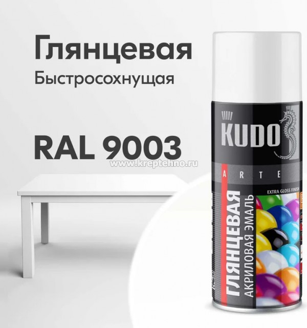 Купить Краску-спрей RAL9003 белую глянцевую акриловую KUDO в Екатеринбурге и Свердловской области можно в сети магазинов КРЕПЕЖ-СИТИ.