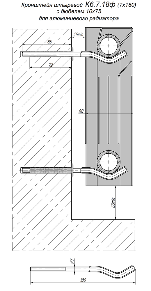 Кронштейн для радиатора 7*180 с дюбелем 10*75