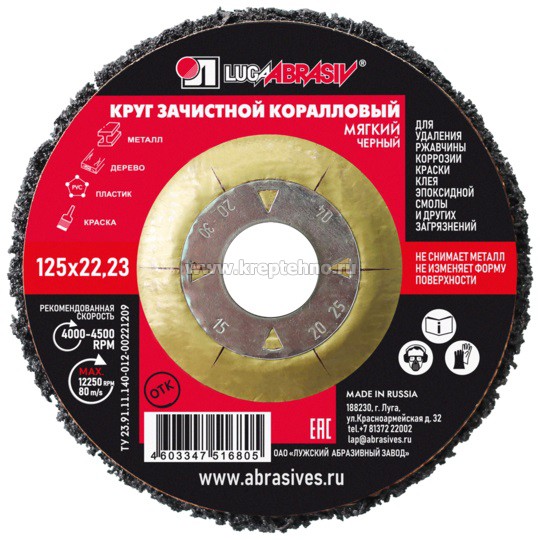 Купить Круг Коралловый 125*22.23 P80 черный мягкий в Екатеринбурге и Свердловской области можно в сети магазинов КРЕПЕЖ-СИТИ.