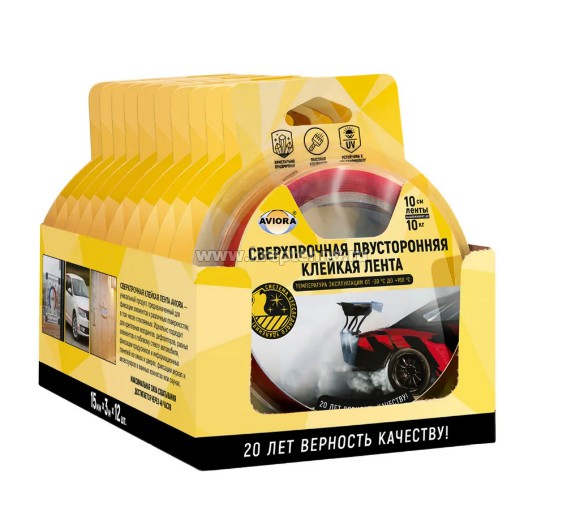 Купить Двустороннюю ленту клейкую сверхпрочную AVIORA в Екатеринбурге и Свердловской области можно в сети магазинов КРЕПЕЖ-СИТИ.