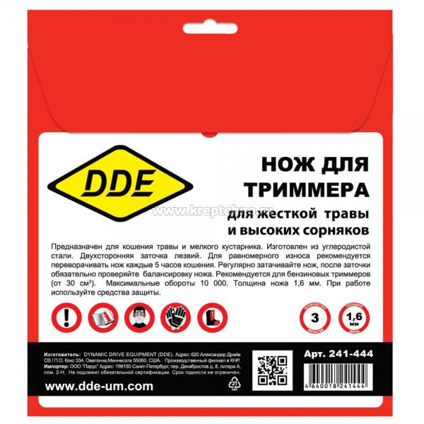 Диск для триммера DDE DAGGER CUT 3-хлопастной, 255 х 25,4/20 мм, предназначен для кошения травы при заготовке сена.
