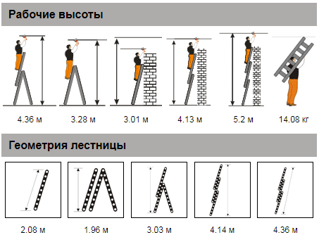 Лестница алюминиевая 3х7 Эйфель Классик, L=5.2м, индустриальная (профиль 82х23мм)