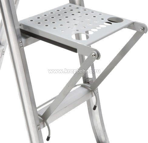 Для установки на лестницы трехсекционные в качестве площадки для опоры или размещения инструментов, что обеспечивает удобство в работе на высоте.